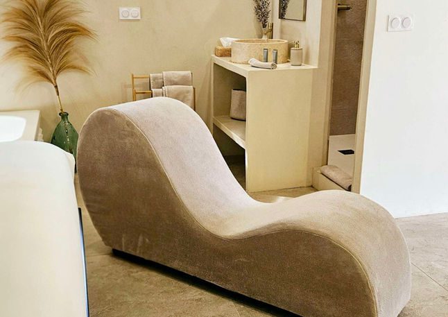 Pour un moment inoubliable, notre suite totalement indépendante est équipée d'une baignoire balnéo, d'un fauteuil tantra, d'une douche à l'italienne,